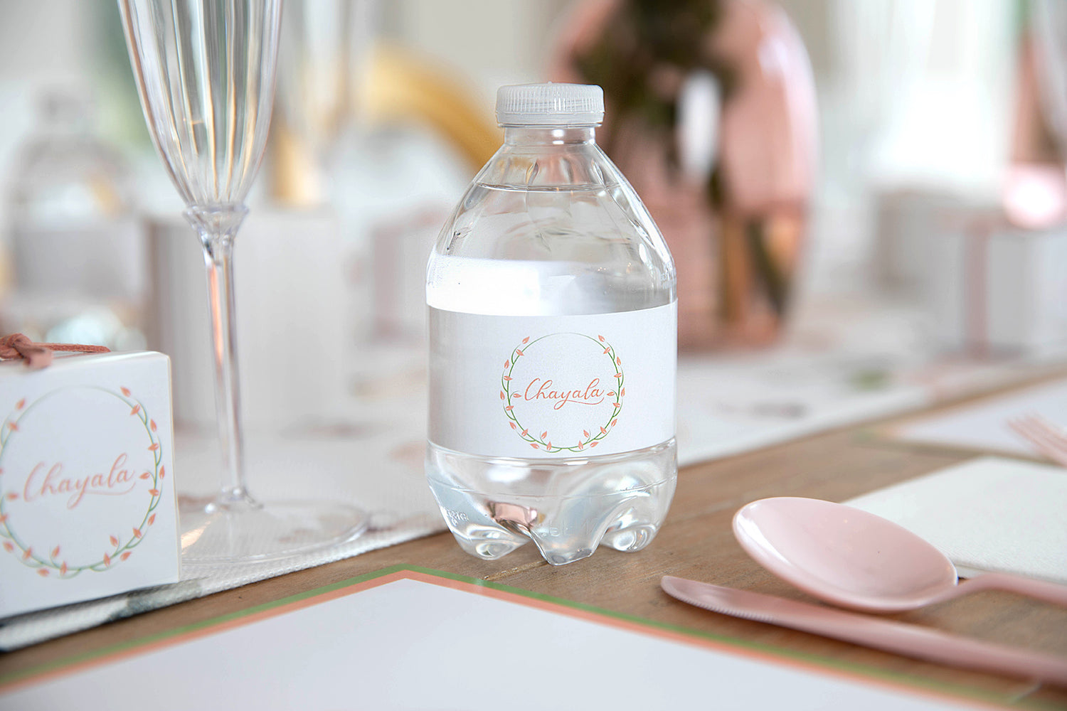 - Party packages with water bottles will contain the labels only