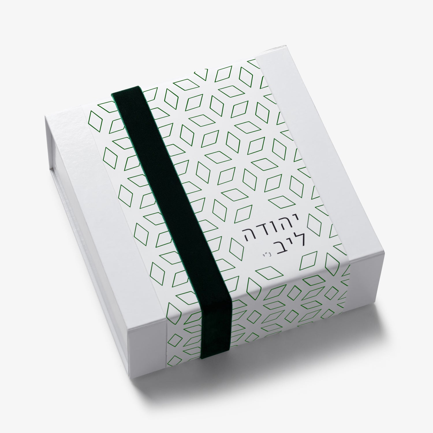- Luxe magnetic box, patterned wrap with velvet ribbon