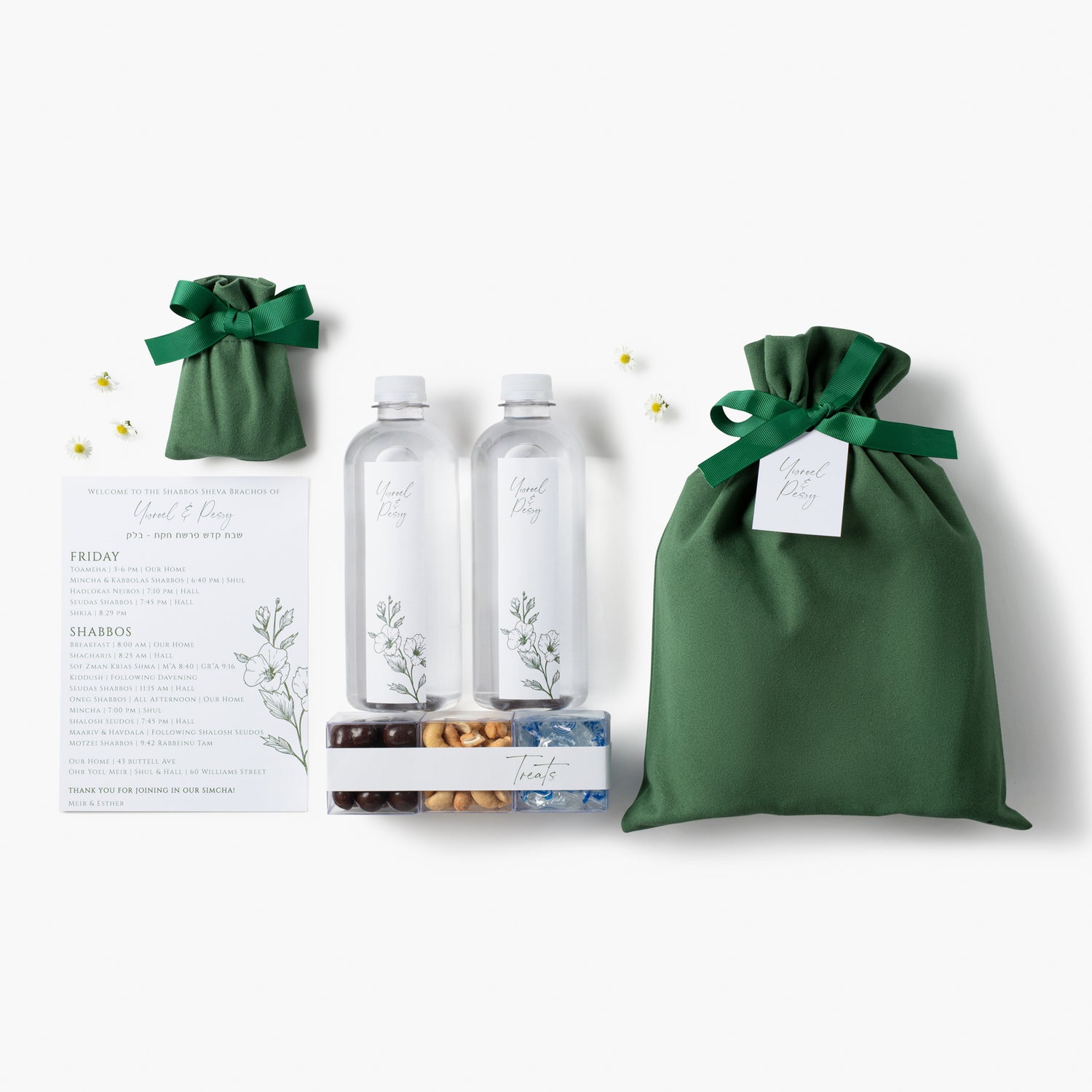 What a welcome! Gift your guests with a reusable suede travel pouch filled to satiate and enjoy!