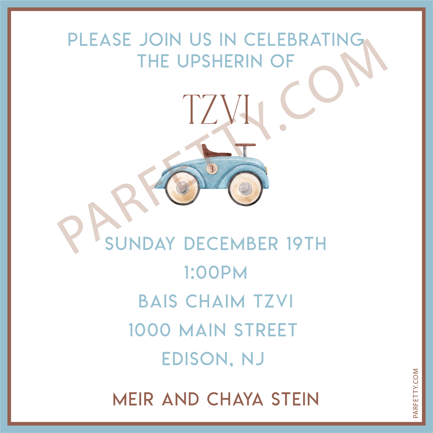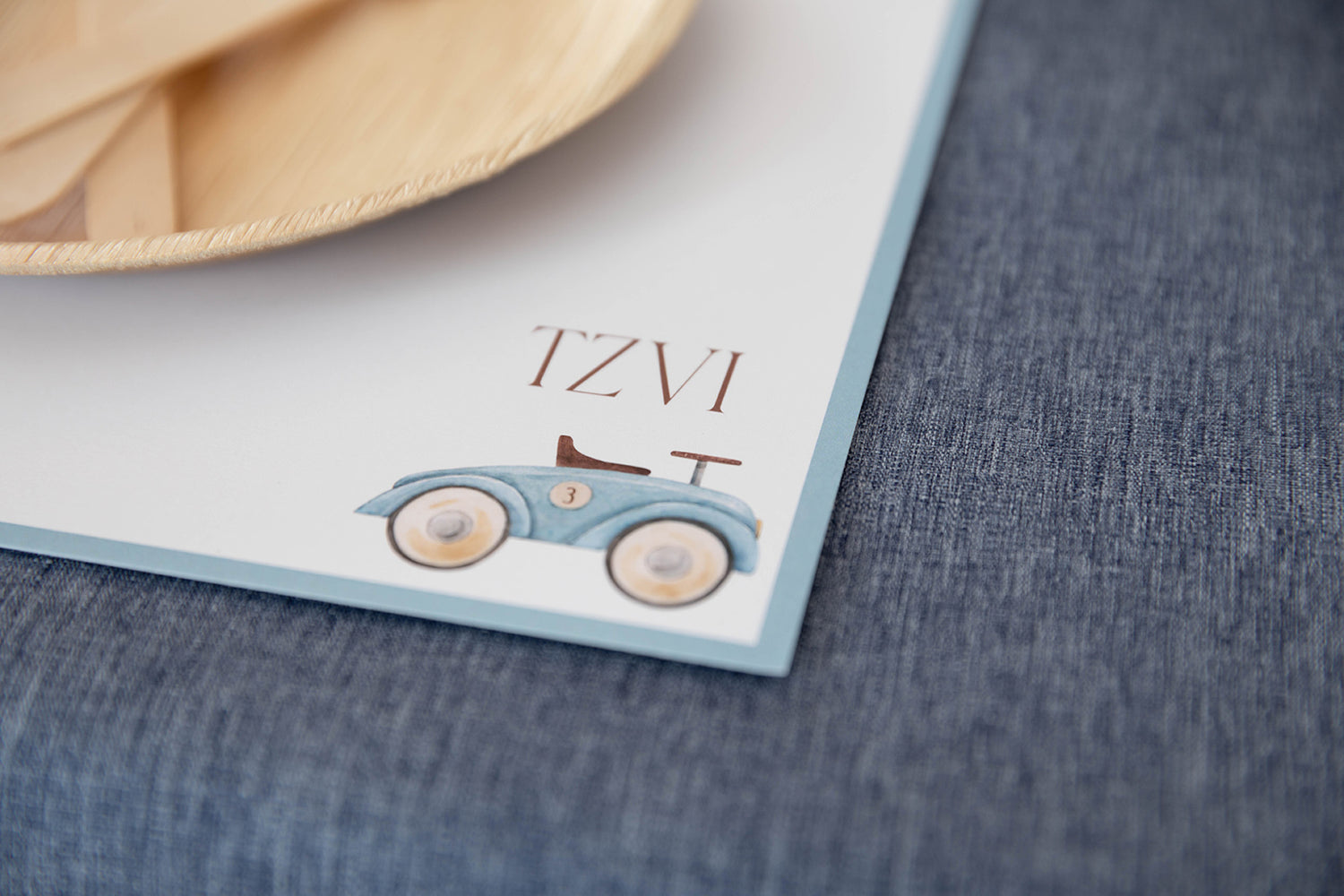 3…2…1 GO! Make way for our best design yet! Our retro car is sure to create an exuberant and lively celebration that will make any little boy smile!